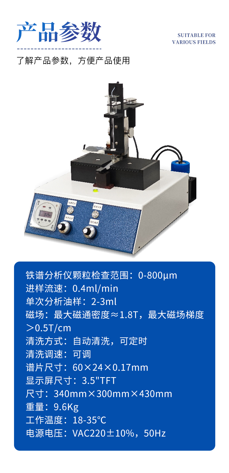?。?)鐵譜分析儀顆粒檢查范圍:0-800μm;