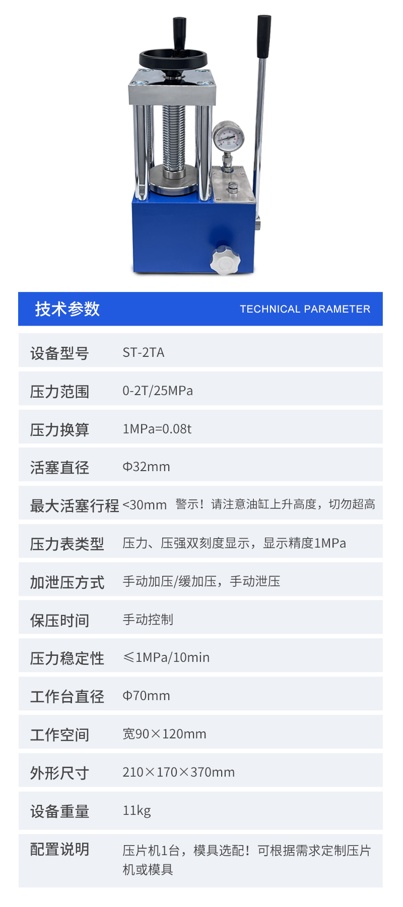 配置說明壓片機1臺,模具選配,數顯表選配!可根據需求定制壓片機或模具