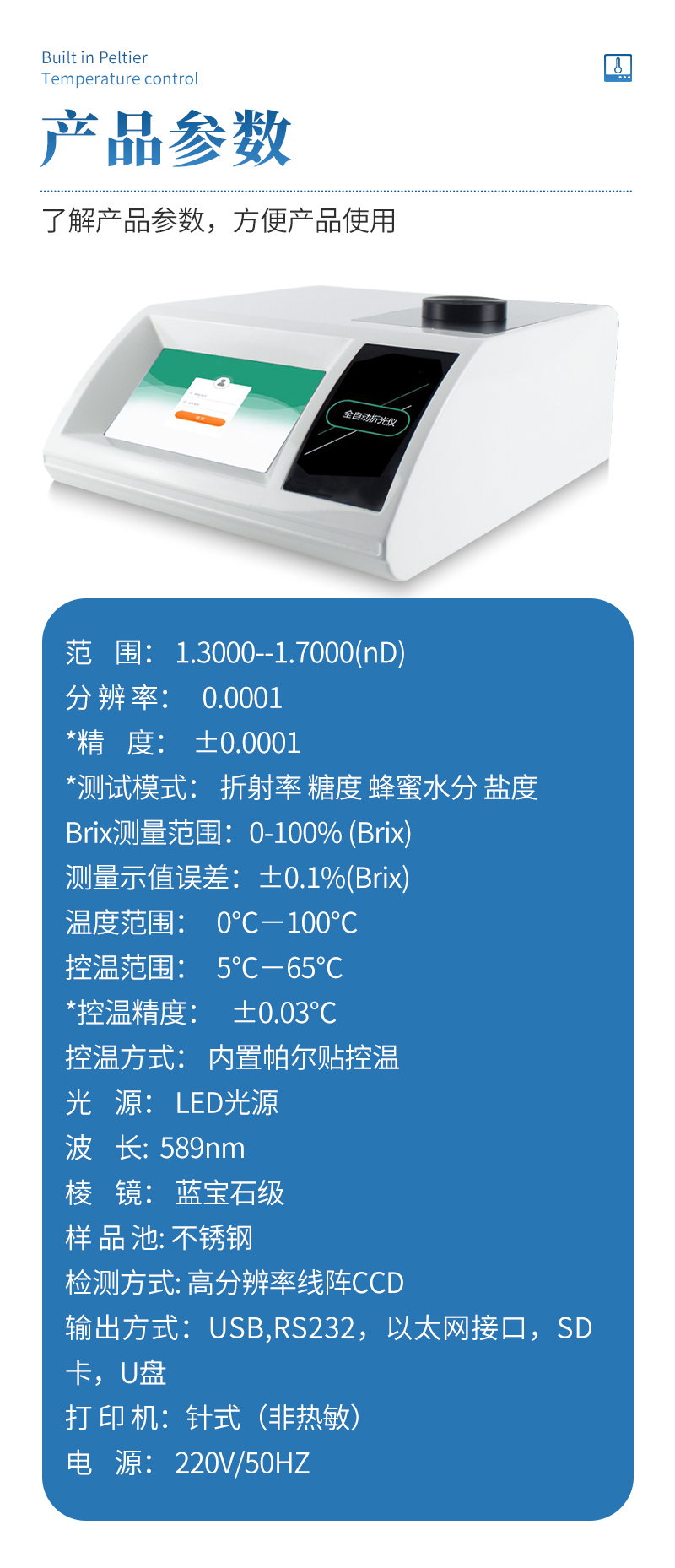測(cè)量示值誤差:±0.1%(Brix)
