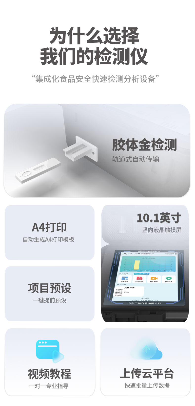2、儀器功能包括:膠體金檢測模塊、數(shù)字化管理模塊、無線通訊模塊等,可以滿足同一軟件下實現(xiàn)所有檢測項目的檢測,并在同一窗口展示檢測結(jié)果。