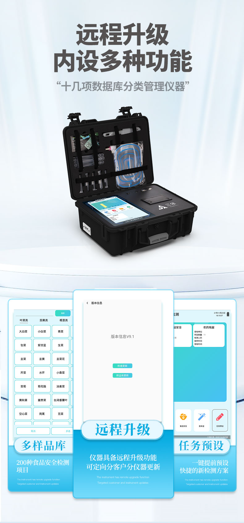 13、儀器具備遠(yuǎn)程升級功能,可定向分客戶分儀器更新,開機(jī)后自動更新,并可持續(xù)性免費更新系統(tǒng)版本,無需像傳統(tǒng)產(chǎn)品返廠更新,節(jié)省時間及人力成本并避免了物流運輸返廠升級導(dǎo)致設(shè)備損壞的潛在風(fēng)險。